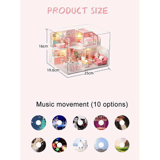- Cultiva la capacidad práctica: la casa de muñecas es ingeniosa en diseño, los accesorios se cortan con precisión y se ajustan perfectamente. Principalmente a través del proceso de bricolaje como unión, montaje, forma, colocación para terminarlo. Proceso de montaje, con placer infinito y exploratorio.
