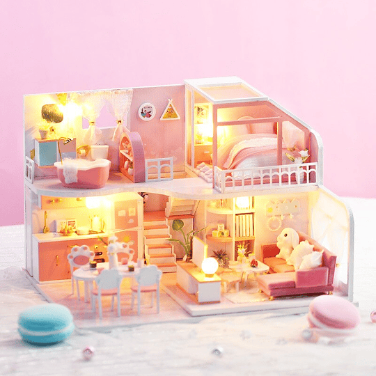 Casa de muñecas para armar junto a tu familia. Este modelo te fascinará por sus increíbles detalles, colores y luces led que le dan una característica única.